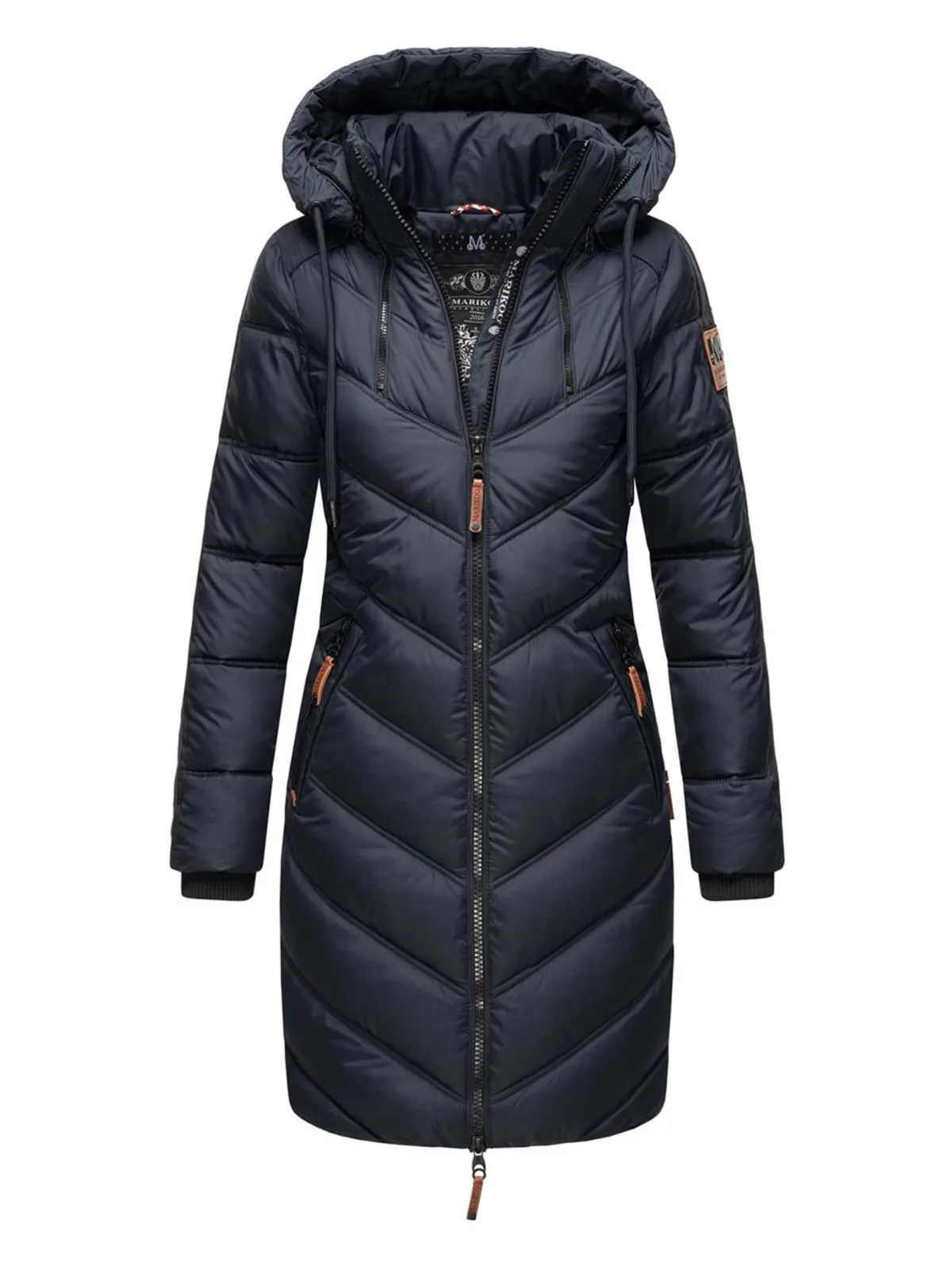 Marikoo dames gewatteerde winterjas – Armasa, lang met capuchon & teddybont voering