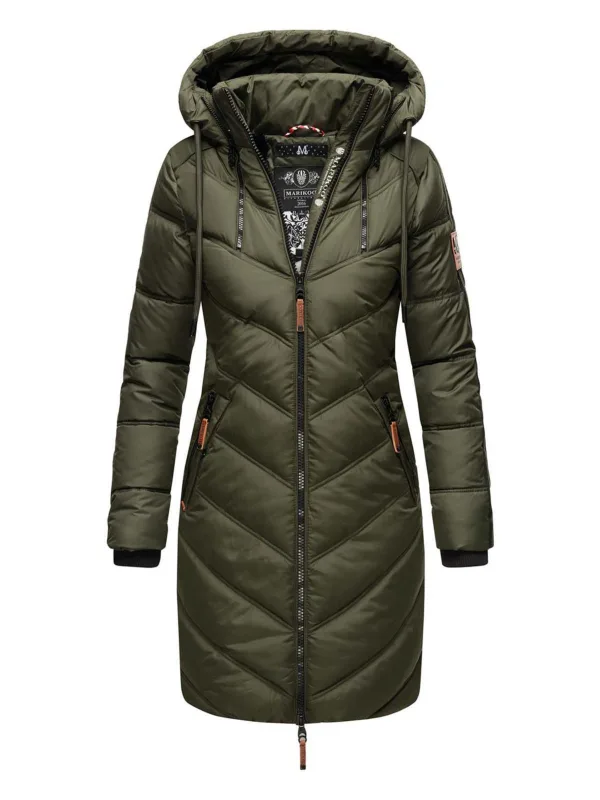 Marikoo dames gewatteerde winterjas – Armasa, lang met capuchon & teddybont voering