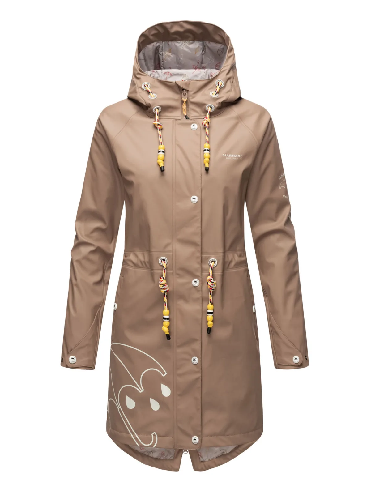 Marikoo dames regenjas – Dancing Umbrella, waterdicht met capuchon