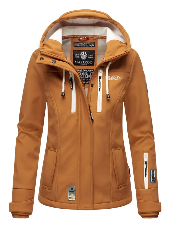 MARIKOO Softshell jas voor dames, tussenjas met capuchon, XS-3XL, Caramel...