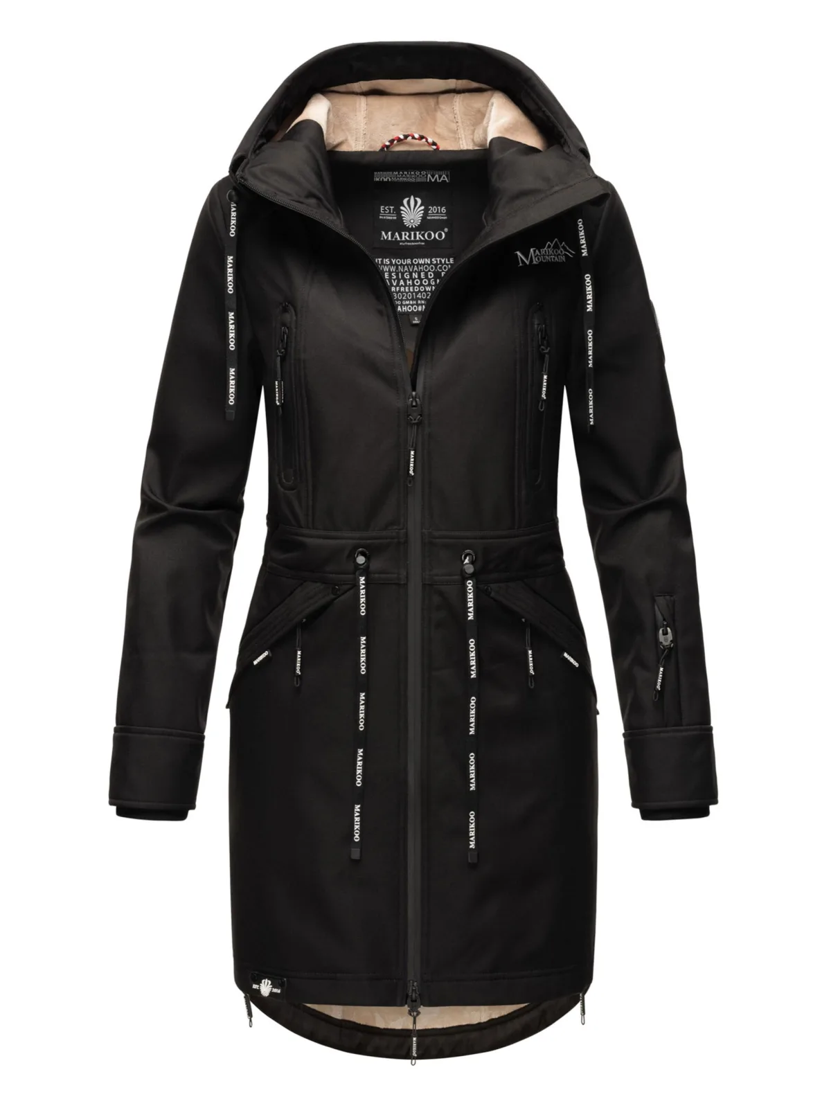 De Racquellee softshelljas van Marikoo is een veelzijdige keuze voor de overgangsseizoenen en winter. Het wind- en waterafstotende materiaal in combinatie met warme fleecevoering zorgt voor comfort en bescherming. Vier buitenzakken met waterdichte ritsen en fleecevoering houden je handen warm, terwijl een binnenzak extra opbergruimte biedt. Modieuze details zoals logokoorden, rubberen zwart-wit accenten en de licht getailleerde pasvorm maken deze jas praktisch én stijlvol.