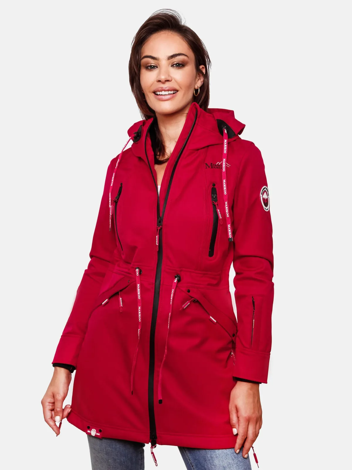 De Racquellee softshelljas van Marikoo is een veelzijdige keuze voor de overgangsseizoenen en winter. Het wind- en waterafstotende materiaal in combinatie met warme fleecevoering zorgt voor comfort en bescherming. Vier buitenzakken met waterdichte ritsen en fleecevoering houden je handen warm, terwijl een binnenzak extra opbergruimte biedt. Modieuze details zoals logokoorden, rubberen zwart-wit accenten en de licht getailleerde pasvorm maken deze jas praktisch én stijlvol.