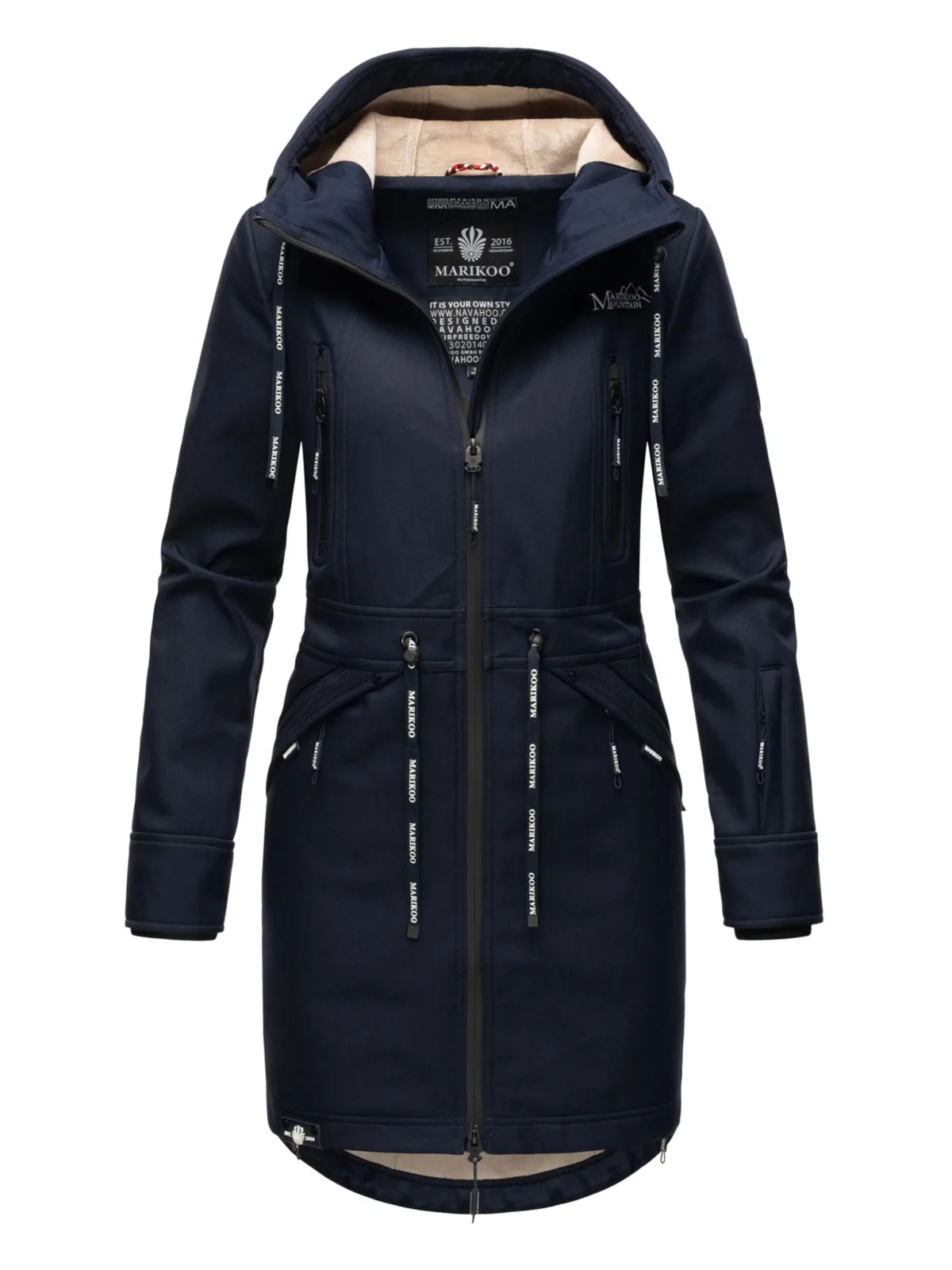 De Racquellee softshelljas van Marikoo is een veelzijdige keuze voor de overgangsseizoenen en winter. Het wind- en waterafstotende materiaal in combinatie met warme fleecevoering zorgt voor comfort en bescherming. Vier buitenzakken met waterdichte ritsen en fleecevoering houden je handen warm, terwijl een binnenzak extra opbergruimte biedt. Modieuze details zoals logokoorden, rubberen zwart-wit accenten en de licht getailleerde pasvorm maken deze jas praktisch én stijlvol.