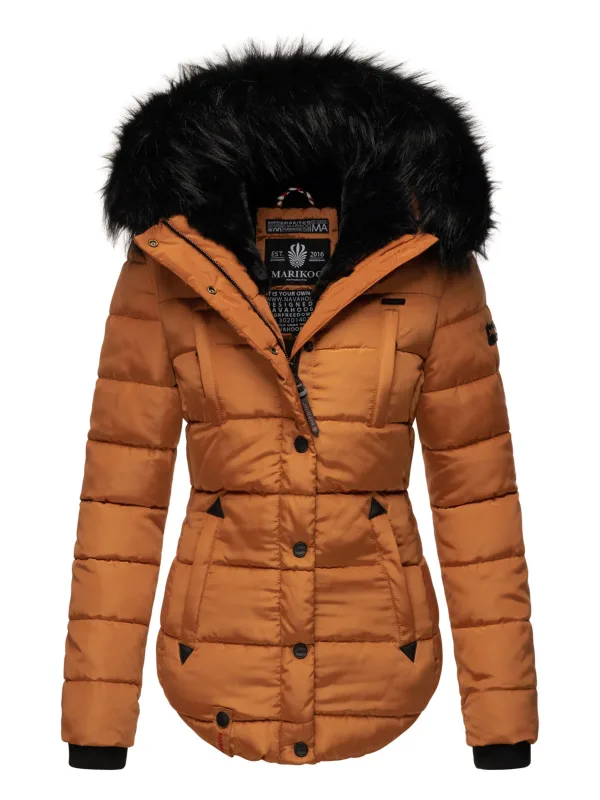 MARIKOO Warme winterjas voor dames gewatteerd kunstbont B618 bruin cinnamon...