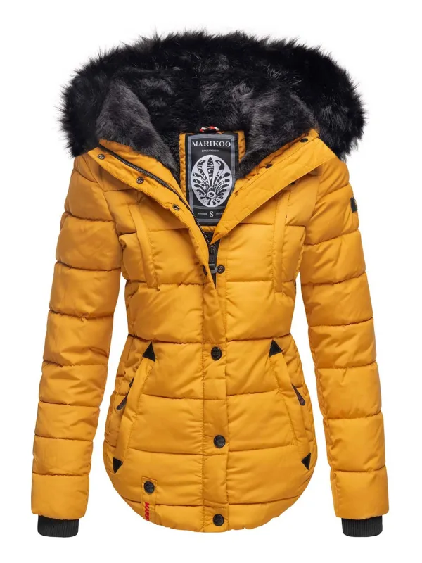 Marikoo dames winterjas Lotusblüte met teddyvoering & imitatiebontkraag Prijzen