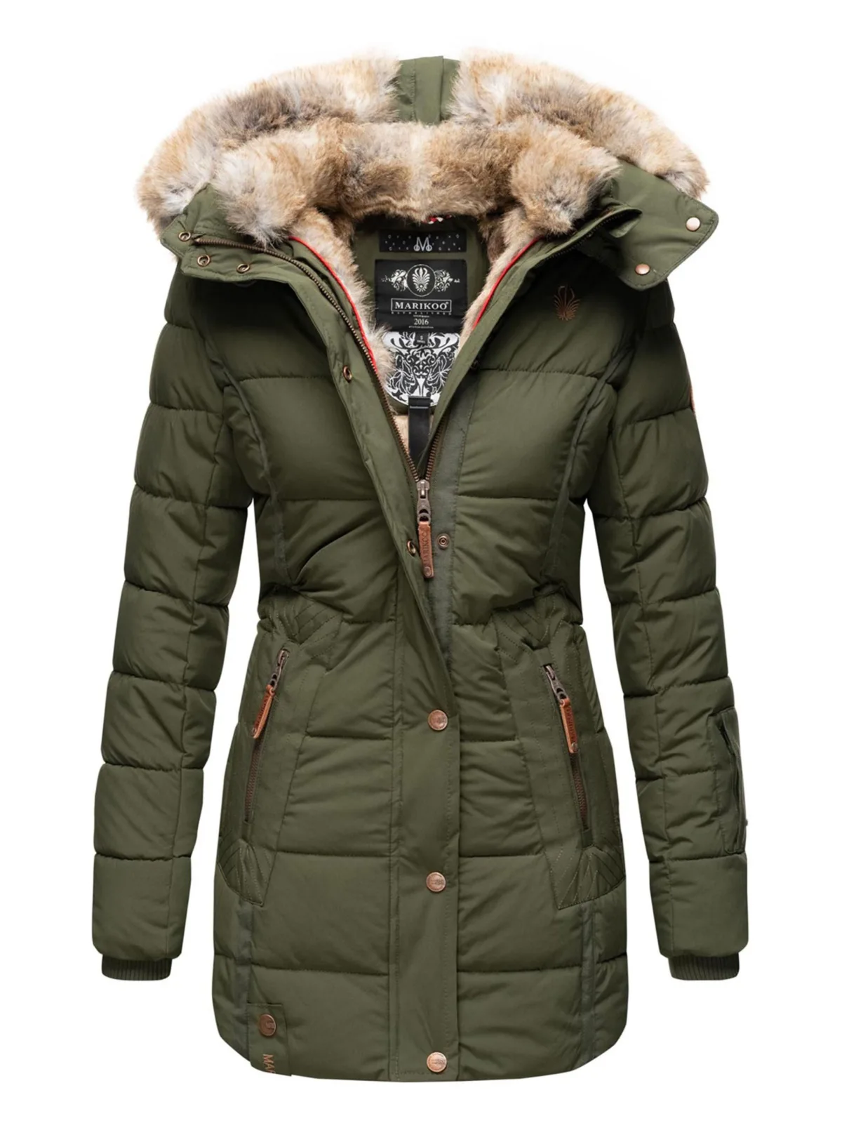 Marikoo dames winterjas met capuchon & imitatiebont voering Prijzen