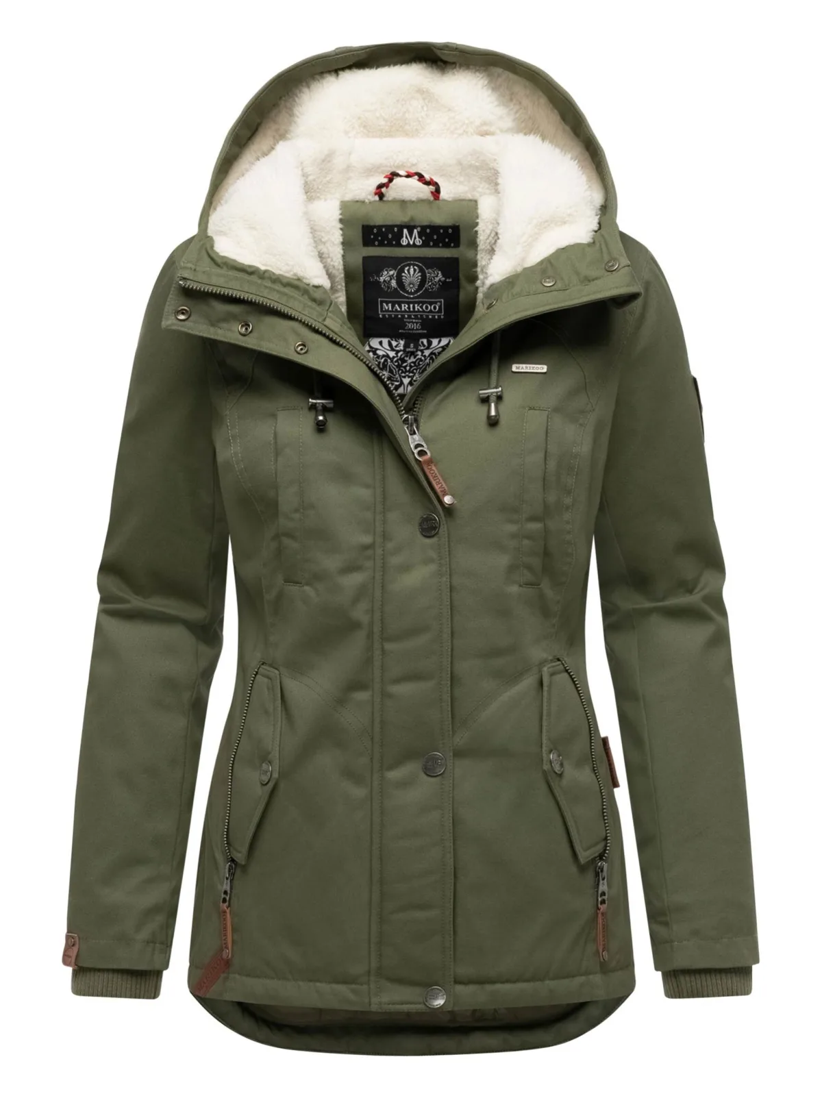 Marikoo dames winterjas met teddyfleece voering & capuchon Prijzen