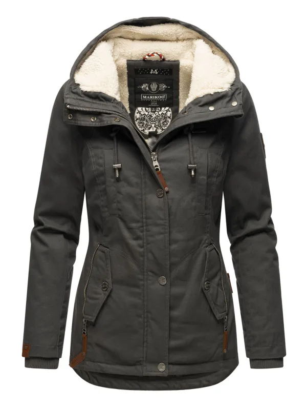 Marikoo dames winterjas met teddyfleece voering & capuchon Prijzen