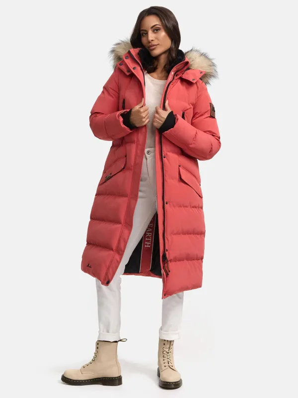 Marikoo dames winterjas – Schneesternchen, lang met capuchon & imitatiebontkraag