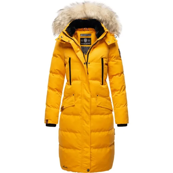 Marikoo dames winterjas – Schneesternchen, lang met capuchon & imitatiebontkraag Prijzen