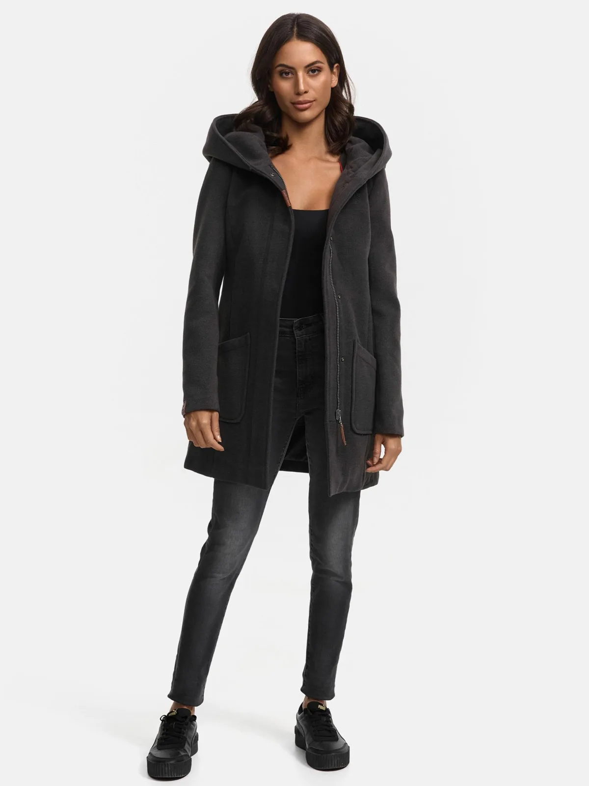 Marikoo dames wintermantel met capuchon en getailleerd model