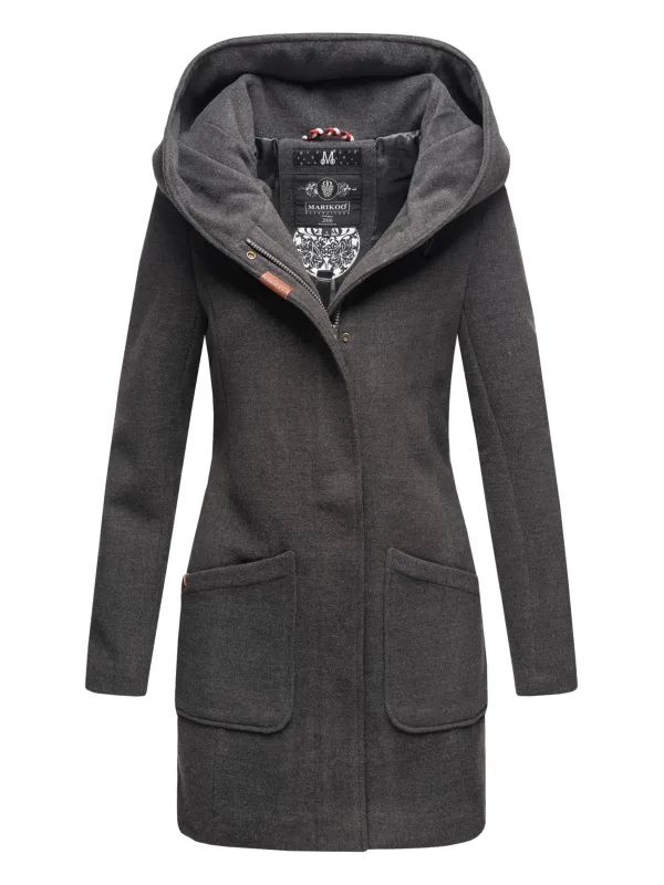 Marikoo dames wintermantel met capuchon en getailleerd model