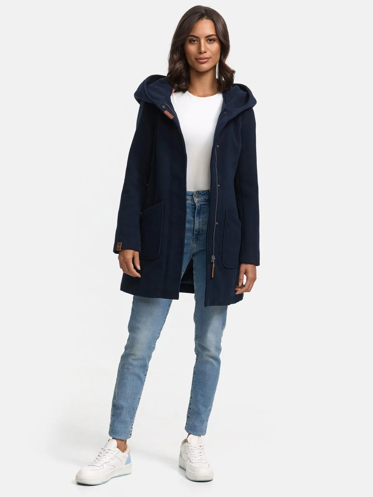 Marikoo dames wintermantel met capuchon en getailleerd model