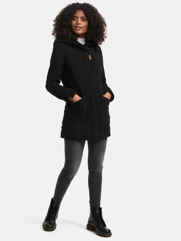 Marikoo dames wintermantel met capuchon en getailleerd model