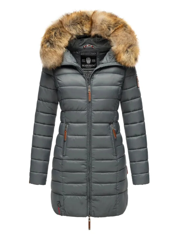 Marikoo damesjas Rose met gewatteerd design & afneembare imitatiebontkraag Prijzen