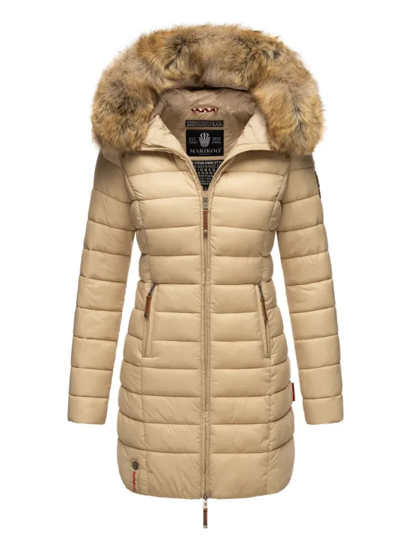 Marikoo damesjas Rose met gewatteerd design & afneembare imitatiebontkraag Prijzen