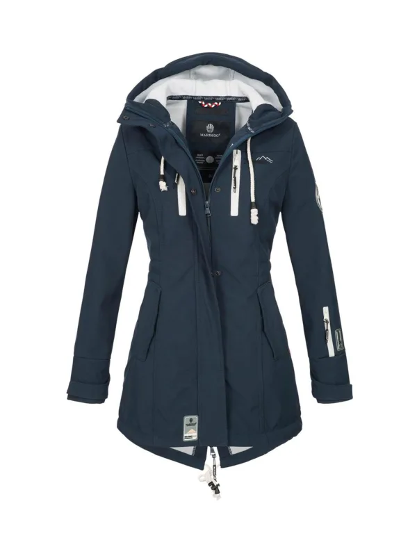 Marikoo dames winterjasAanbieden is een warme dames softshell jas van het trendmerk 'Marikoo'. Het model imponeert met zijn waterafstotende buitenmateriaal, de zeer goede afwerking, de vele zakken en de optimale pasvorm. Met de taillekoord kun je de pasvorm aanpassen aan je persoonlijke smaak. De jassen van het huis Marikoo vertegenwoordigen altijd de huidige modetrend en zijn gemaakt met oog voor detail. Verkrijg een van deze premium jassen en laat je imponeren door de unieke prijs-kwaliteitverhouding.Model: Cinnamon BitchBuitenstof: 98% polyester, 2% spandexBinnenstof: 100% polyesterZeer goede kwaliteit en gedetailleerd afgewerktZeer draagcomfort en optimale pasvormPerfecte snit, achterkant langer dan voorkantGeband boorden, beschermt tegen wind en kouBinnen is het volledige achterkantgedeelte met fleecestofTweezijdige borstzakken met ritsTwee voorzakken aan de voorkant Twee pocketnepjes aan de voorkant met drukknoopsluitingAlle zakken zijn aan de binnenzijde met warme fleece voorzienTwee binnenzakken met rits, perfect voor mobiele telefoon of Mp3-spelerBinnenzakken met kleine opening, speciaal voor hoofdtelefoon-/headsetkabelBinnen tailleband voor optimale figuurafstellingCapuchon ook aan de binnenzijde voorzien van fleecestof (niet afneembaar)Marikoo-logo op de linkerborstMarikoo-patch op de linker bovenarmKlittensluiting op de mouwen voor het aanpassen van de pasvormMouwen met warme ribgebreide manchettenDoorgang voor waterdichte ritsExtra knopenlijst beschermt tegen wind en kouLicht getailleerde snit, perfecte pasvormZeer comfortabel om te dragen