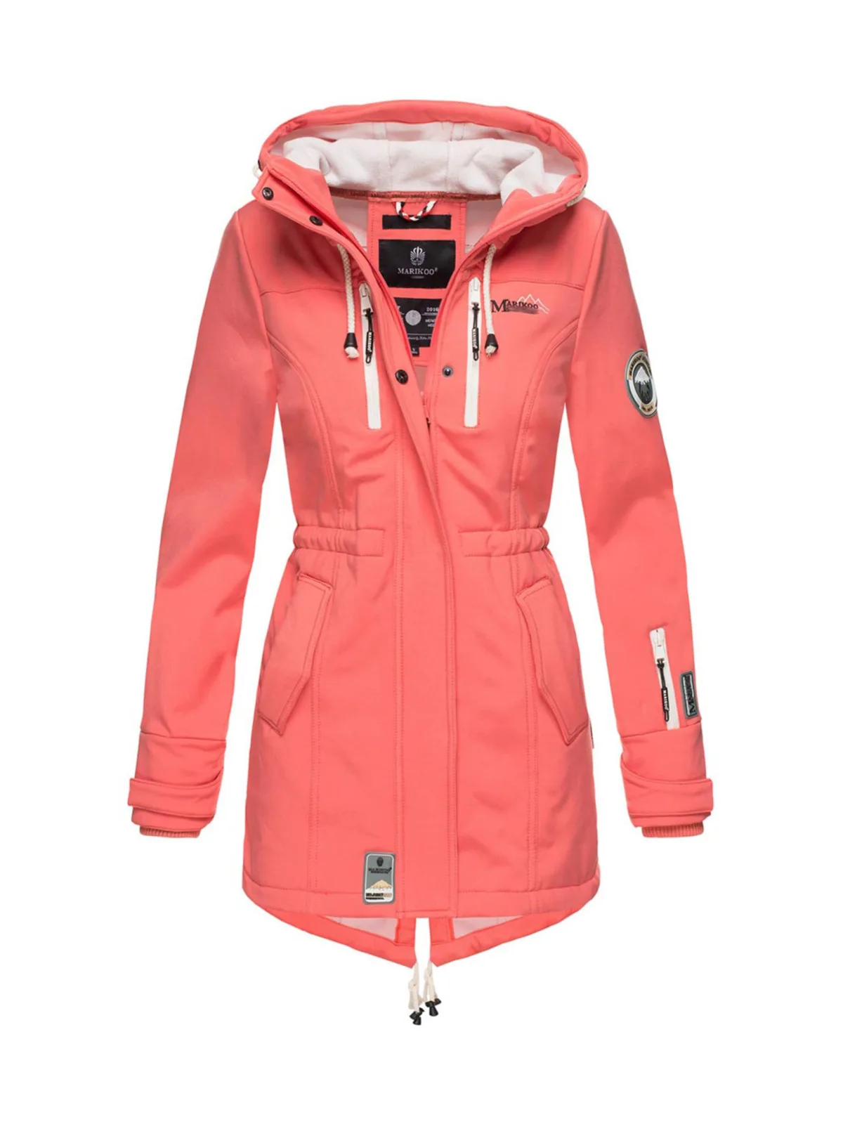 Marikoo dames winterjackAanbieden is een warme dames softshell jack van het trendy merk 'Marikoo'. Het model maakt indruk met zijn waterafstotende buitenmateriaal, de zeer goede afwerking, de vele zakken en de optimale pasvorm. Met de drawstring in de taille kun je de fit aanpassen aan je persoonlijke voorkeur. De jassen van het huis Marikoo vertegenwoordigen altijd de huidige modetrend en zijn met veel aandacht voor detail gemaakt. Verkrijg een van deze premium jassen en laat je indruk maken door de unieke prijs-kwaliteitverhouding.Model: Cinnamon BitchBuitenstof: 98% polyester, 2% spandexBinnenstof: 100% polyesterZeer goede kwaliteit en detailrijk verwerktSuper draagcomfort en optimale pasvormPerfecte snit, achterkant langer dan de voorkantGebonden kraag, beschermt tegen wind en kouBinnenzijde is de gehele rug met fleecestofBedekte borstzakken met ritsTwee zijzakken aan de voorkant Twee zakdummies aan de voorkant op de zakken met drukknoopSluitingen van de zakken zijn aan de binnenkant met warme fleeceBedekte binnenzakken met rits, perfect voor mobiele telefoon of Mp3-spelerBinnenzakken met kleine opening, speciaal voor oordopjes / headsetkabelBinnenband voor optimale figuurafstemmingCapuchon is ook aan de binnenkant met fleecestof voorzien (niet verwijderbaar)Marikoo-logo op de linker borstMarikoo-patch op de linker bovenarmKlittebandsluiting op de mouwen om de fit aan te passenMouwen met warme ribgebreide manchettenDoorvoer waterdichte ritsExtra knoopsluiting beschermt tegen wind en kouSoepele taille snit, perfecte pasvormZeer comfortabel om te dragen