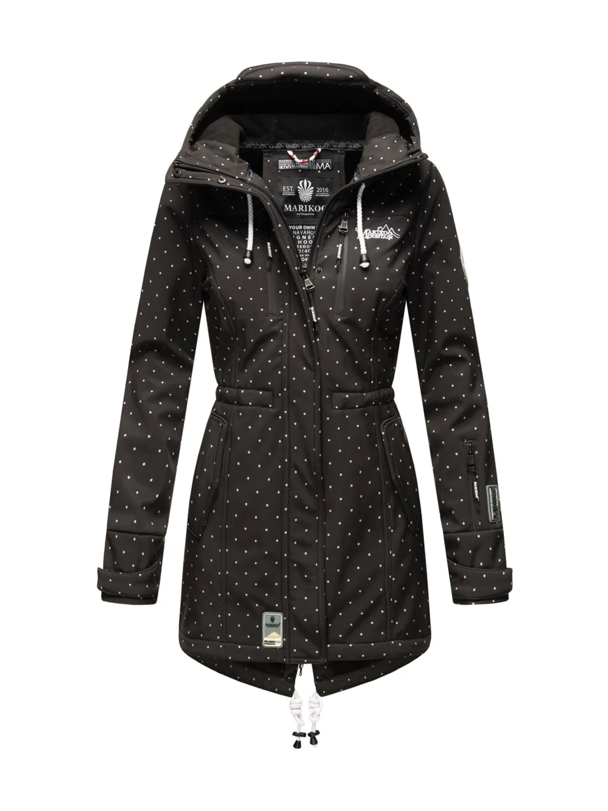 De lange gewatteerde jas Abendsternchen van Marikoo combineert stijl en draagcomfort. Het zachte materiaal, de licht getailleerde pasvorm en de langere vorm bieden warmte en een vrouwelijke look. De hoogsluitende kraag beschermt de nek, terwijl de capuchon indien gewenst kan worden verwijderd. Met twee ritszakken aan de zijkant en een binnenzak met koptelefoordoorvoer is de jas praktisch en modern. Verkrijgbaar in vele trendy kleuren – ideaal voor koude dagen. Materiaal: Buitenkant/voering/vulling 100% polyester.