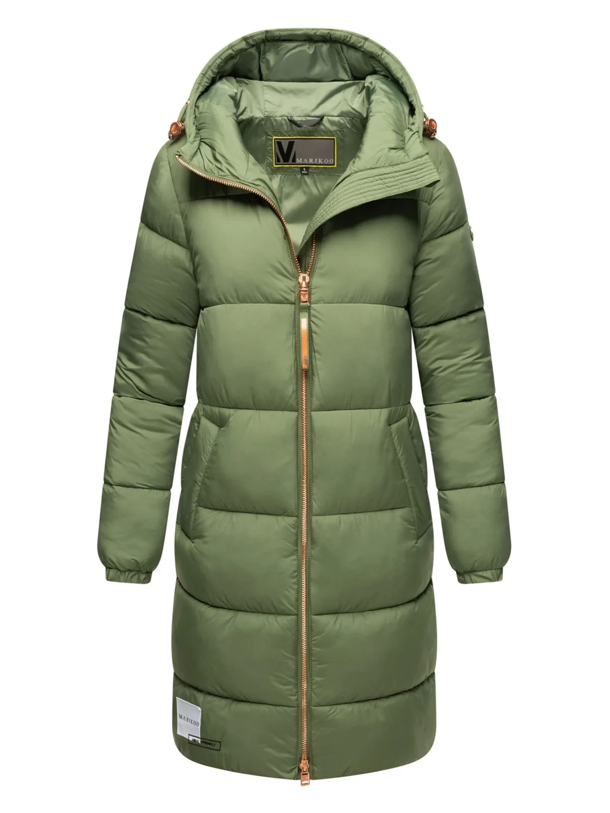 Marikoo lange dames gewatteerde winterjas met capuchon – Nomadiaa