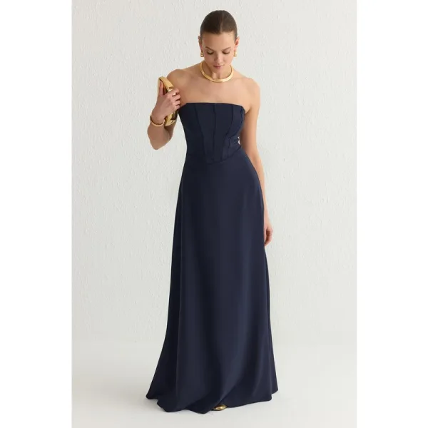 Marineblauwe avond- en galajurk