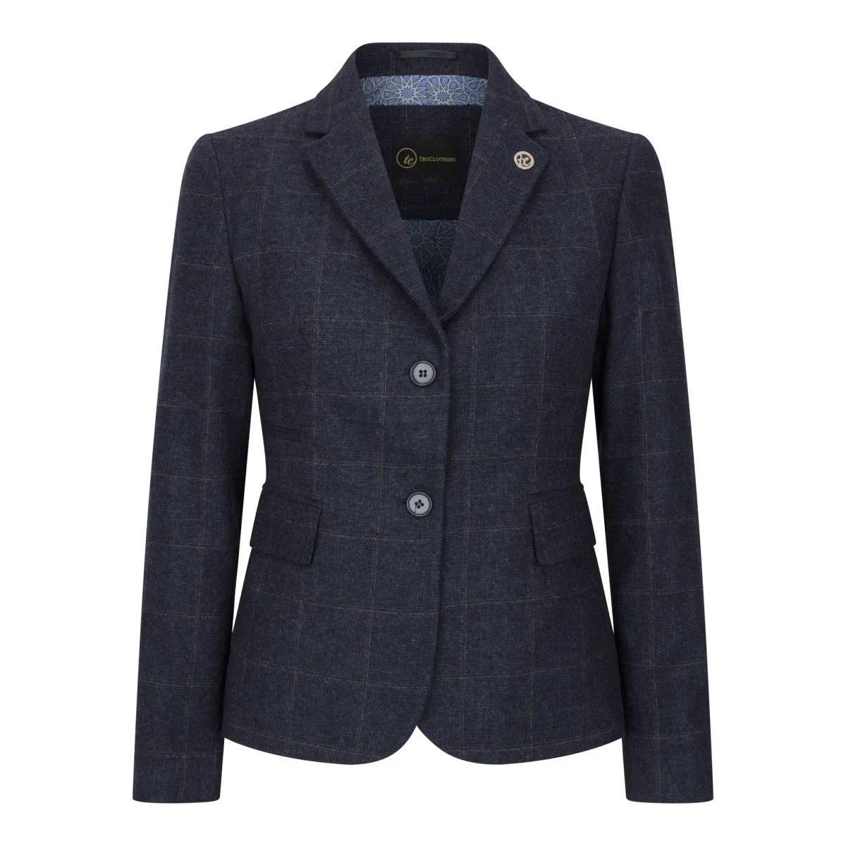 Verfijnd en tijdloos, deze damesblazer is vervaardigd in een luxueus marineblauw tweed ruitpatroon. Gemaakt van een hoogwaardige wolmix, biedt de blazer een perfecte balans tussen comfort, duurzaamheid en verfijnde stijl - ideaal voor zowel professionele als smart-casual gelegenheden. De volledig gevoerde blazer heeft een voorkant met twee knopen, twee klepzakken, een enkele split achter en opvallende elleboogstukken die een vleugje historische charme toevoegen. Elegant ontwerp: Klassiek marineblauw ruitpatroon voor een nette en veelzijdige look Blazerdetails: Sluiting met twee knopen, elleboogstukken, klepzakken, enkele split en volledig gevoerd Premium stof: Hoogwaardige mix van 50% wol, 35% polyester en 15% viscose Smart-casual Veelzijdigheid: Ideaal voor zakelijk gebruik, kantoorkleding of een stijlvolle alledaagse stijl