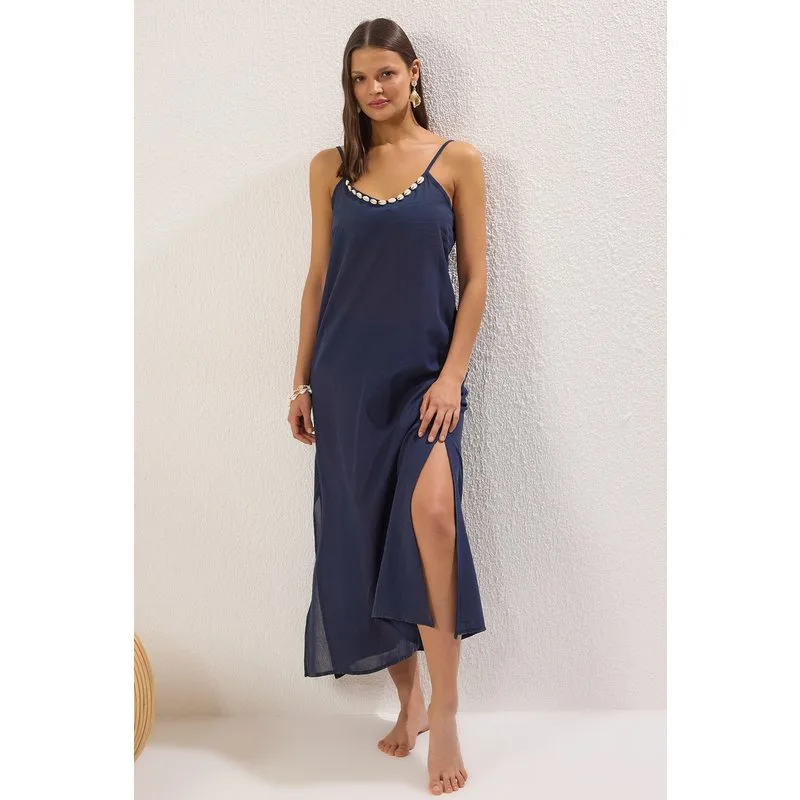 Marineblauwe rechte maxijurk voor dames aansluitende strandjurk
