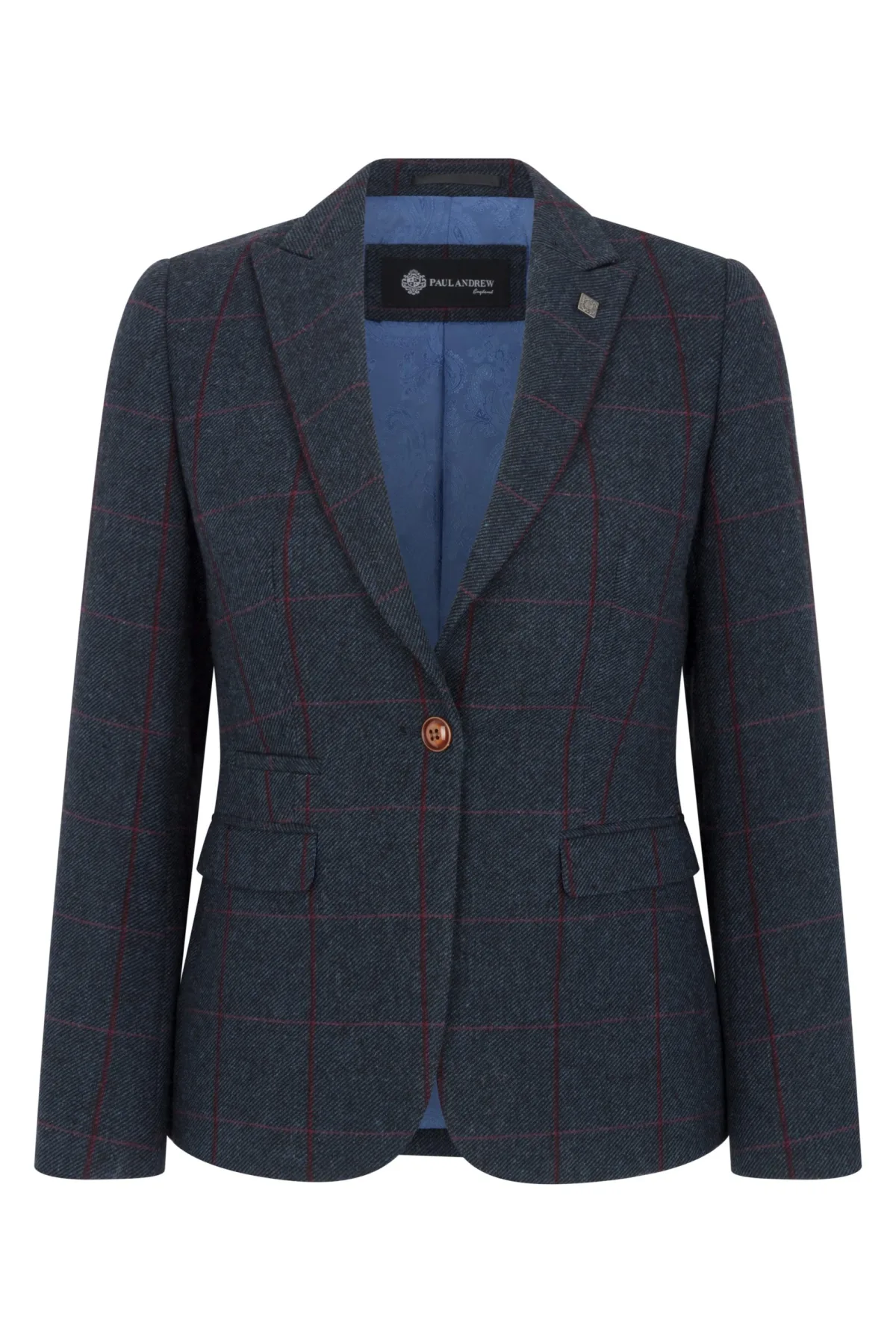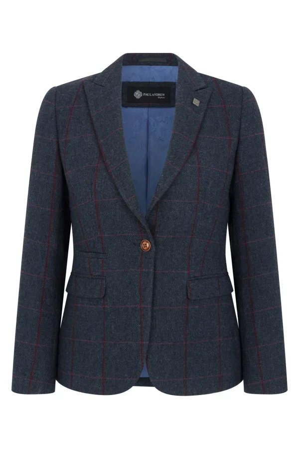 Marineblauwe tweed blazer met getailleerde pasvorm voor dames Prijzen