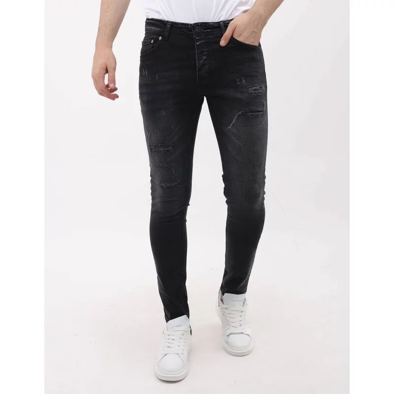 Jeans met Scheuren Heren Slim Fit - MM-S-109 - Zwart - Specificaties:- Jeans met Scheuren Heren Slim Fit - Artikelcode: MM-S-109- Lengte: Standaard 34 - Pasvorm: Slim Fit / Stretch- Patroon: Gaten (dicht)- Sluiting: Knopen- Kledingproductie: Turkije- Materiaal: 98% Coton, 2% Spandex- Weefsel: Denimweefsel - Zakken: 2 Voorzakken, 2 Achterzakken- Wasvoorschrift: Machinewas 30 graden- Beschikbare maten: 29 - 30 - 31 - 32 - 33 - 34 - 36 - 38