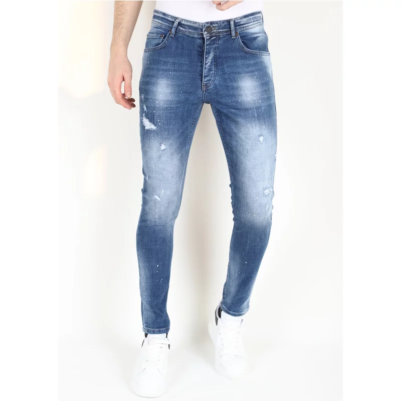 Slim Fit Spijkerbroek Heren met Verfspatten -MM108 - Blauw