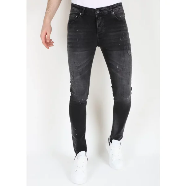 Zwarte Slim Fit Stretch Jeans Heren met Gaten - Specificaties:- Slim Fit Stretch Jeans Heren met Gaten- Kleur: Zie afbeelding - Artikelcode: MM113- Lengte: Standaard 34 - Pasvorm: Slim Fit / Stretch- Patroon: Paint (verfspatten) / Gaten (dicht)- Sluiting: Knopen- Kledingproductie: Turkije- Materiaal: 98% Coton, 2% Spandex- Weefsel: Denimweefsel - Zakken: 2 Voorzakken, 2 Achterzakken- Wasvoorschrift: Machinewas 30 graden- Beschikbare maten: 29 - 30 - 31 - 32 - 33 - 34 - 36 - 38