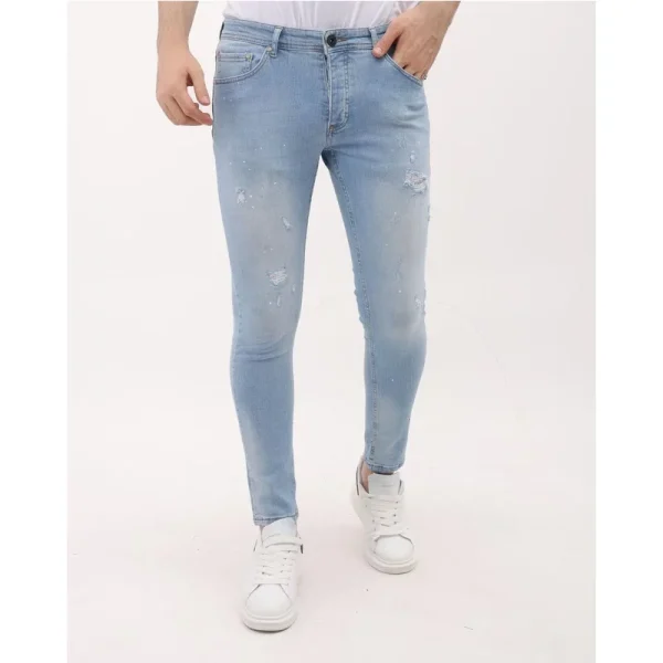 Slim Fit Stretch Heren Jeans met Paint en Gaten - MM-S-108 - Blauw - Specificaties:- Slim Fit Stretch Heren Jeans met Paint en Gaten - Artikelcode: MM-S-108- Lengte: Standaard 34 - Pasvorm: Slim Fit / Stretch- Patroon: Paint (verfspatten) / Gaten (dicht)- Sluiting: Knopen- Kledingproductie: Turkije- Materiaal: 98% Coton, 2% Spandex- Weefsel: Denimweefsel - Zakken: 2 Voorzakken, 2 Achterzakken- Wasvoorschrift: Machinewas 30 graden- Beschikbare maten: 29 - 30 - 31 - 32 - 33 - 34 - 36 - 38