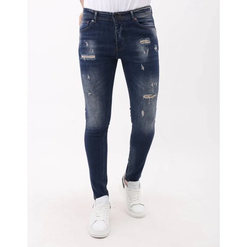 Heren Spijkerbroek Slim Fit met Verfspatten - MM-S-105 - Blauw - Specificaties:- Heren Spijkerbroek Slim Fit met Verfspatten- Artikelcode: MM-S-105- Lengte: Standaard 34 - Pasvorm: Slim Fit / Stretch- Patroon: Paint (vervspatten) / Gaten (dicht)- Sluiting: Knopen- Kledingproductie: Turkije- Materiaal: 98% Coton, 2% Spandex- Weefsel: Denimweefsel - Zakken: 2 Voorzakken, 2 Achterzakken- Wasvoorschrift: Machinewas 30 graden- Beschikbare maten: 29 - 30 - 31 - 32 - 33 - 34 - 36 - 38