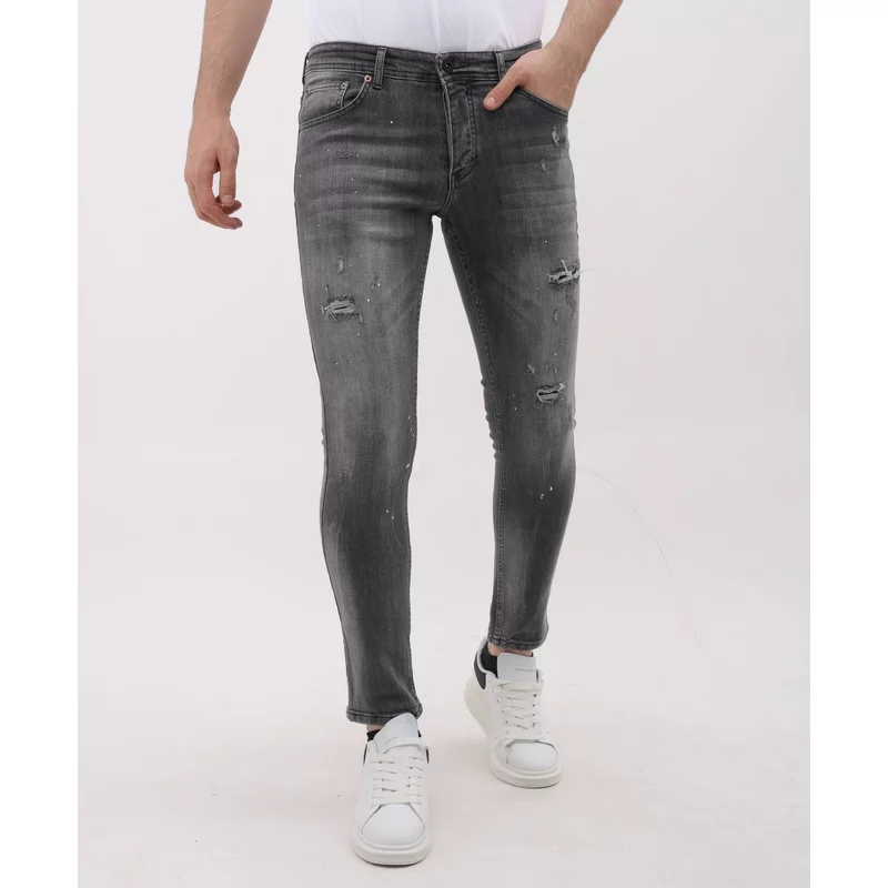 Stonewashed Slim Fit Jeans met Scheuren Heren - MM-S-115 - Grijs - Specificaties:- Stonewashed Slim Fit Jeans met Scheuren Heren- Artikelcode: MM-S-115- Lengte: Standaard 34 - Pasvorm: Slim Fit / Stretch- Patroon: Paint (vervspatten) / Gaten (dicht)- Sluiting: Knopen- Kledingproductie: Turkije- Materiaal: 98% Coton, 2% Spandex- Weefsel: Denimweefsel - Zakken: 2 Voorzakken, 2 Achterzakken- Wasvoorschrift: Machinewas 30 graden- Beschikbare maten: 29 - 30 - 31 - 32 - 33 - 34 - 36 - 38