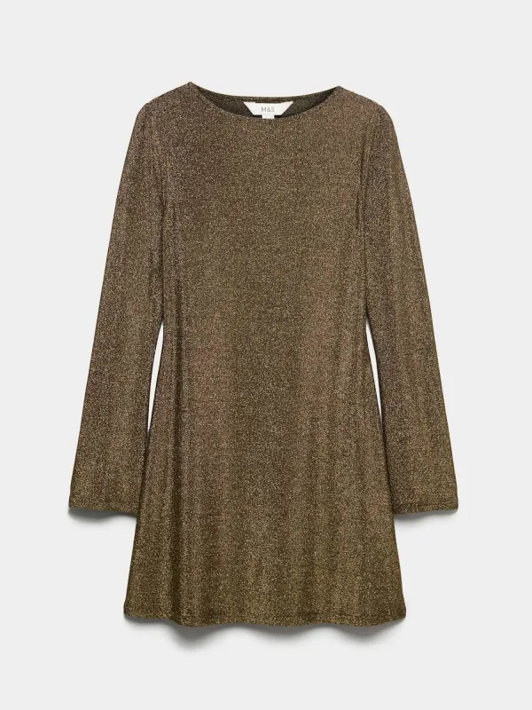 Design: Gevoerde zoom/rand; Type sluiting: Slip; Halstype: Boothals; Motief: Mélange; Extra's: Label patch/label flag, Metallic look; Lengte: Kort/mini; Snit: Getailleerd; Pasvorm: Slanke pasvorm; Armlengte: Lange mouw