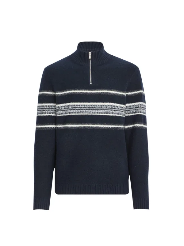 Design: Geribd ceintuurtje; Type sluiting: Ritssluiting; Materiaal: Knitwear; Halstype: Schipperskraag; Motief: Gestreept; Extra's: Fully fashioned; Pasvorm: Normale pasvorm; Armlengte: Lange mouw
