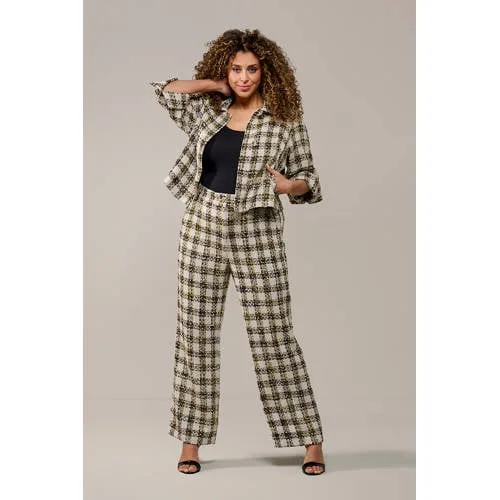 Dit seizoen is er één jasje dat je niet wilt missen: het modieuze bouclé jasje dat in elke garderobe een statement maakt. Het jasje heeft een korte, rechte pasvorm en driekwart mouwen voor een moderne uitstraling. De combinatie van beige, bruin, zwart en geel in een gestructureerde boucléstof geeft het jasje een stijlvolle en elegante uitstraling. De doorknoopsluiting is bedekt met dezelfde bouclé stof, terwijl de blazer is afgewerkt met een klassieke kraag en schuine steekzakken. De achterzijde van de mouwen heeft kleine splitjes, wat het design extra verfijnd maakt. De voering in klassiek zwart polyester maakt de blazer compleet. Fashiontip: Ontdek ook de Jacky blazer in groen/roze.