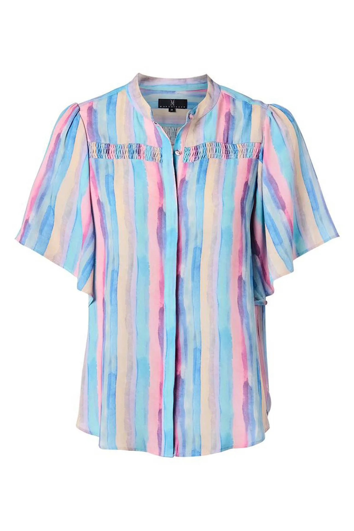 Deze top voor dames van Mart Visser is gemaakt van gerecycled polyester (duurzaam) en heeft een all over print. Het model heeft een ronde hals en korte mouwen. De top heeft een knoopsluiting.details van deze top:stijlnaam: Waylon