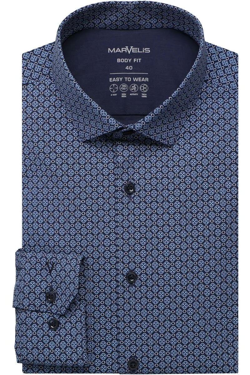 - Bij Overhemden.com kun je Marvelis Body Fit Jersey shirt marine, Motief kopen voor slechts €54,95