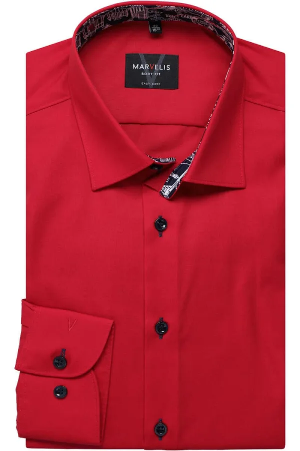 - Bij Overhemden.com kun je Marvelis Body Fit Overhemd baksteenrood, Effen kopen voor slechts €45,95