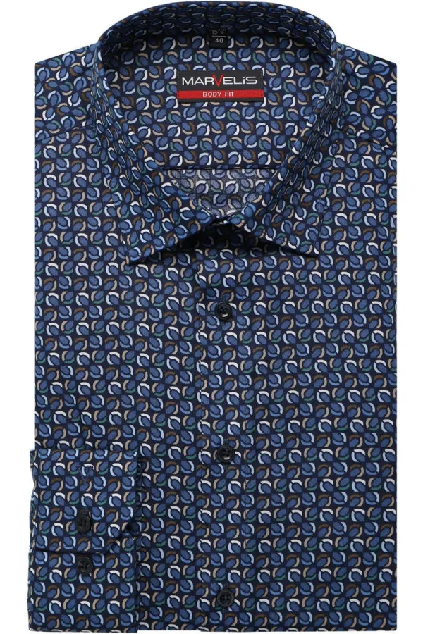 - Bij Overhemden.com kun je Marvelis Body Fit Overhemd blauw/bruin, Motief kopen voor slechts €47,95