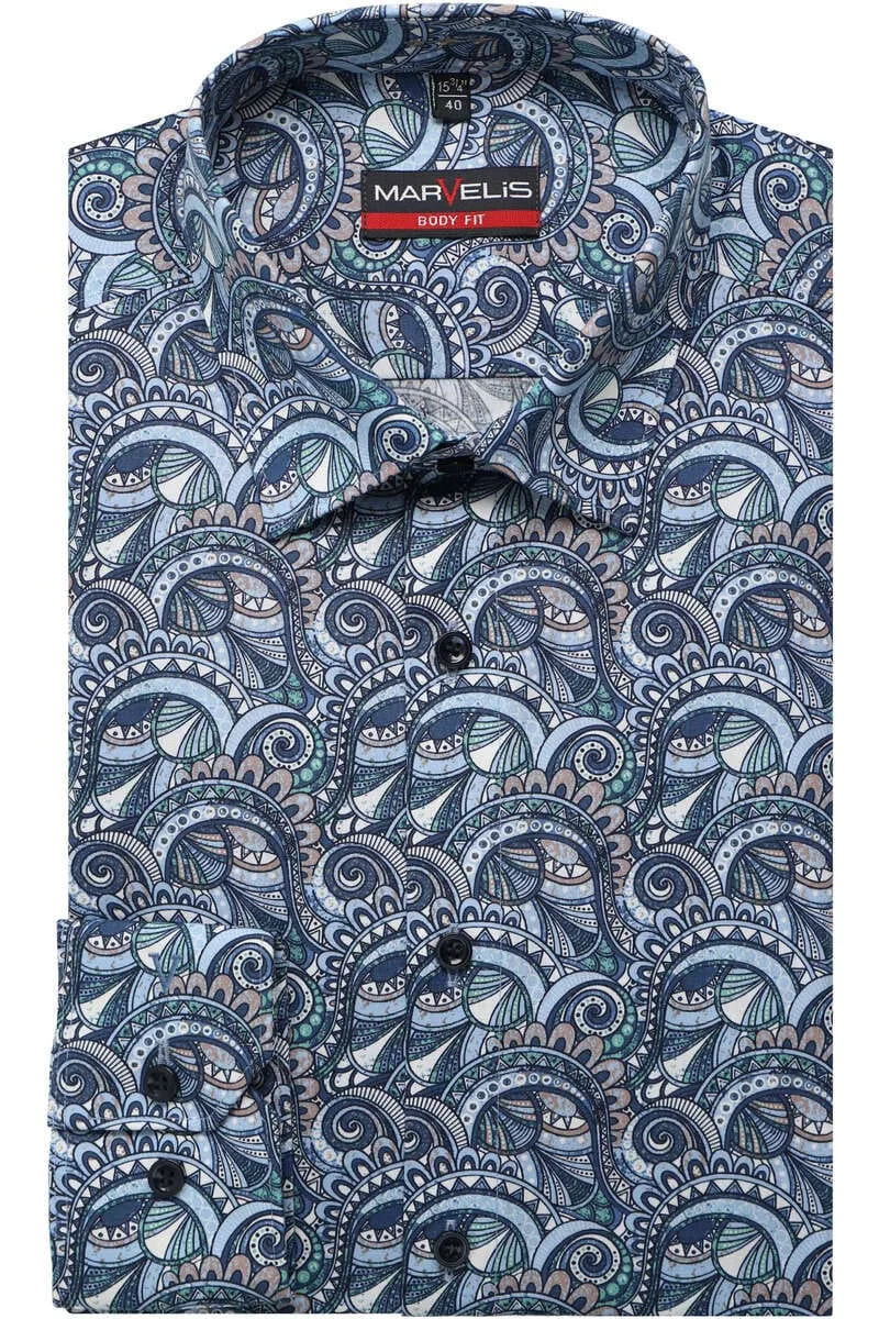 - Bij Overhemden.com kun je Marvelis Body Fit Overhemd blauw/bruin, Motief kopen voor slechts €23,95