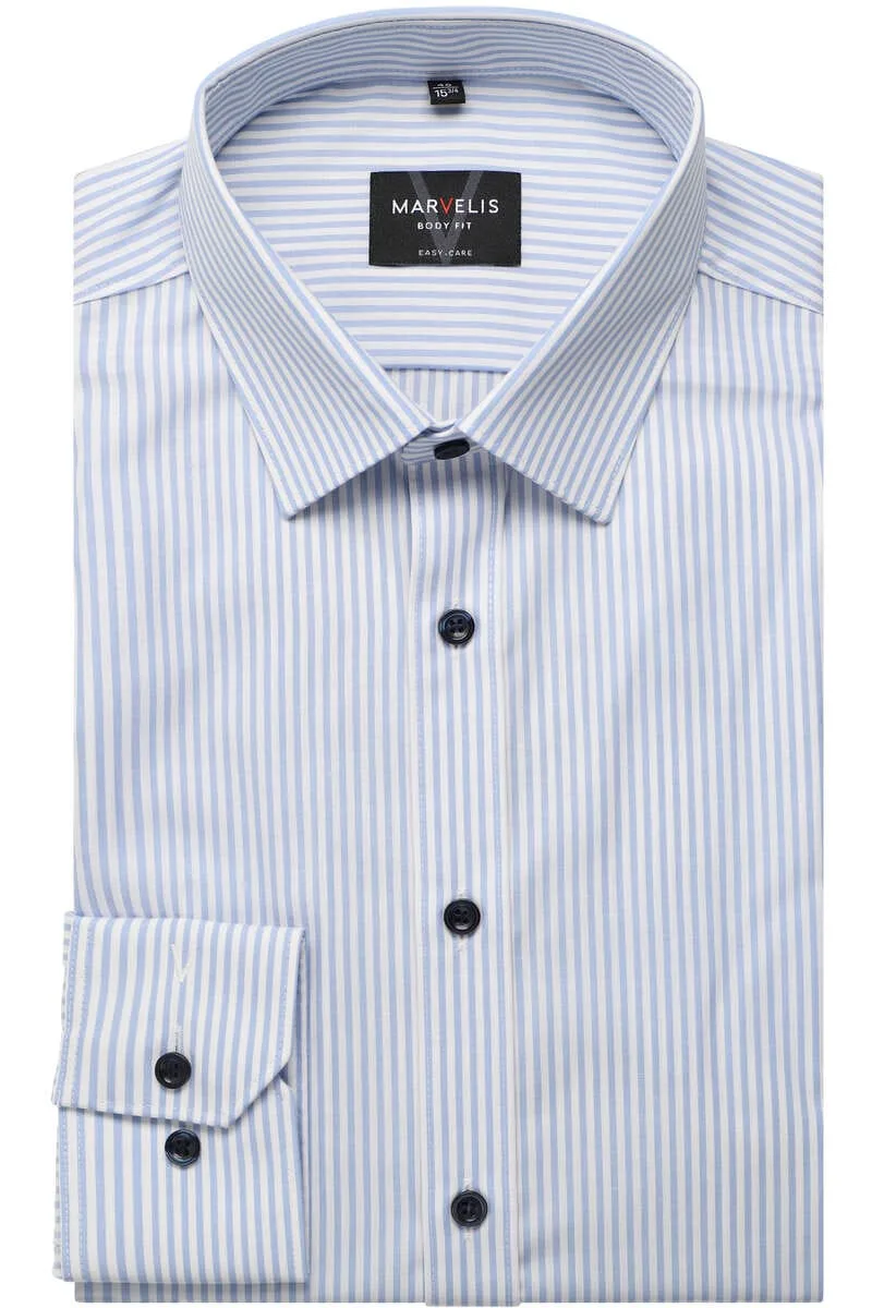 Marvelis Body Fit Overhemd blauw/wit, Gestreept Prijzen
