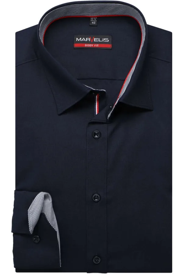 - Bij Overhemden.com kun je Marvelis Body Fit Overhemd Marine, Effen kopen voor slechts €54,95
