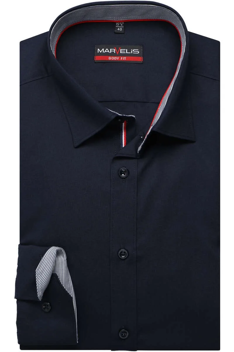 Marvelis Body Fit Overhemd Marine, Effen