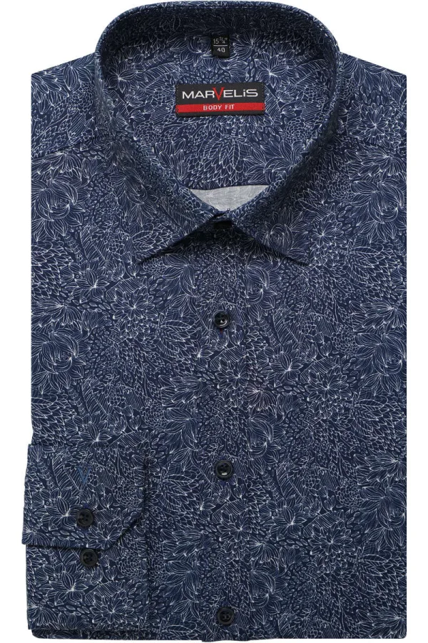 Marvelis Body Fit Overhemd Marine, Motief
