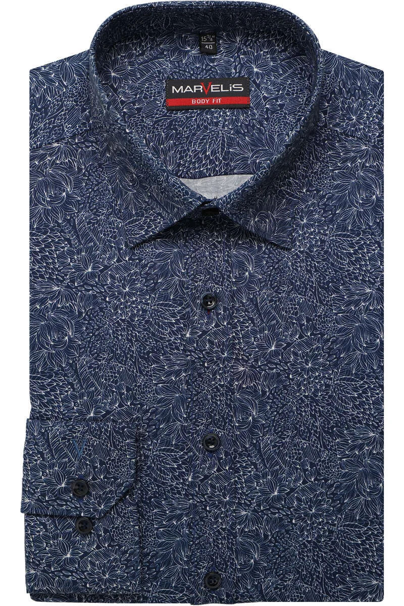 - Bij Overhemden.com kun je Marvelis Body Fit Overhemd Marine, Motief kopen voor slechts €54,95