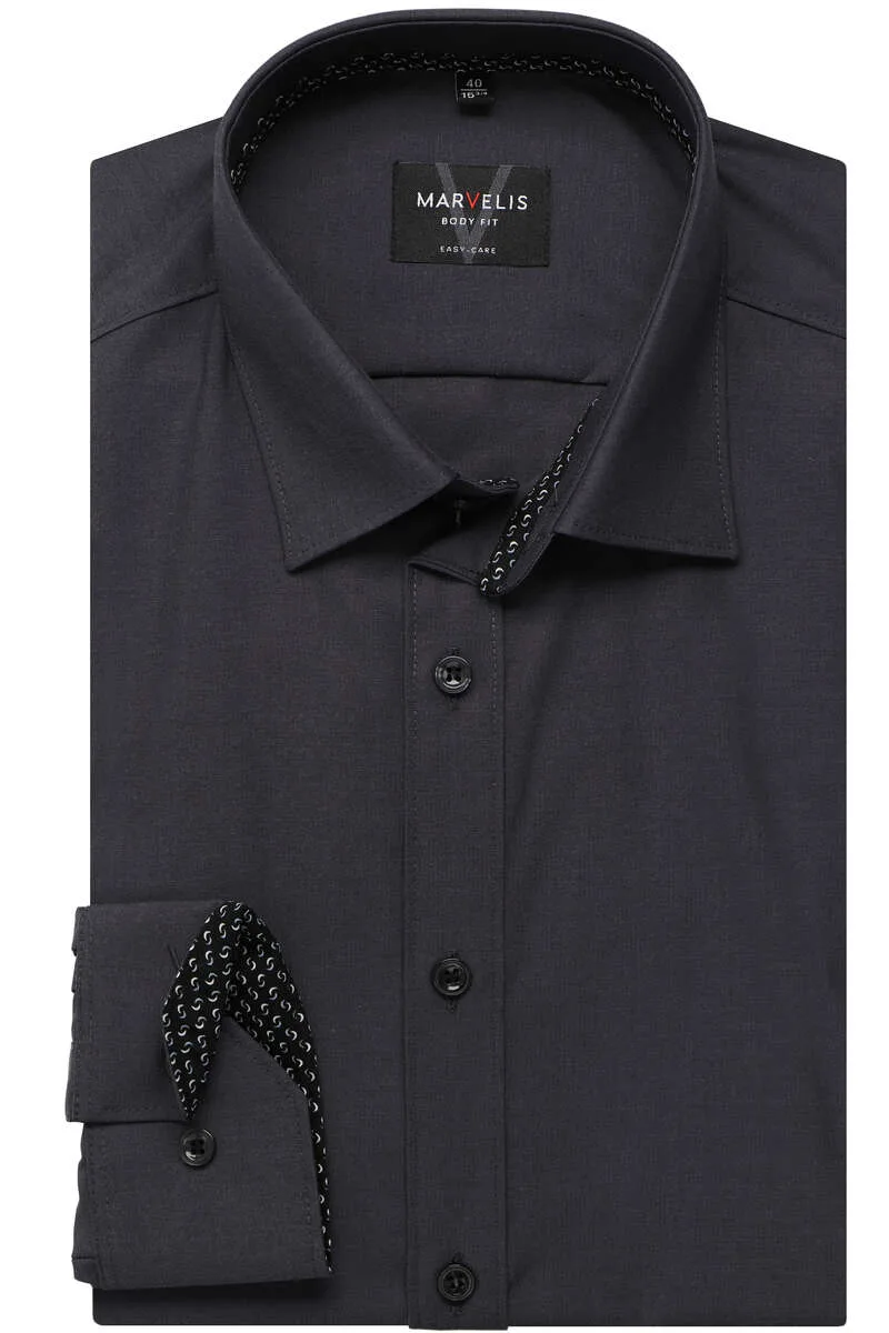 Marvelis Body Fit Overhemd zwart, Effen Prijzen