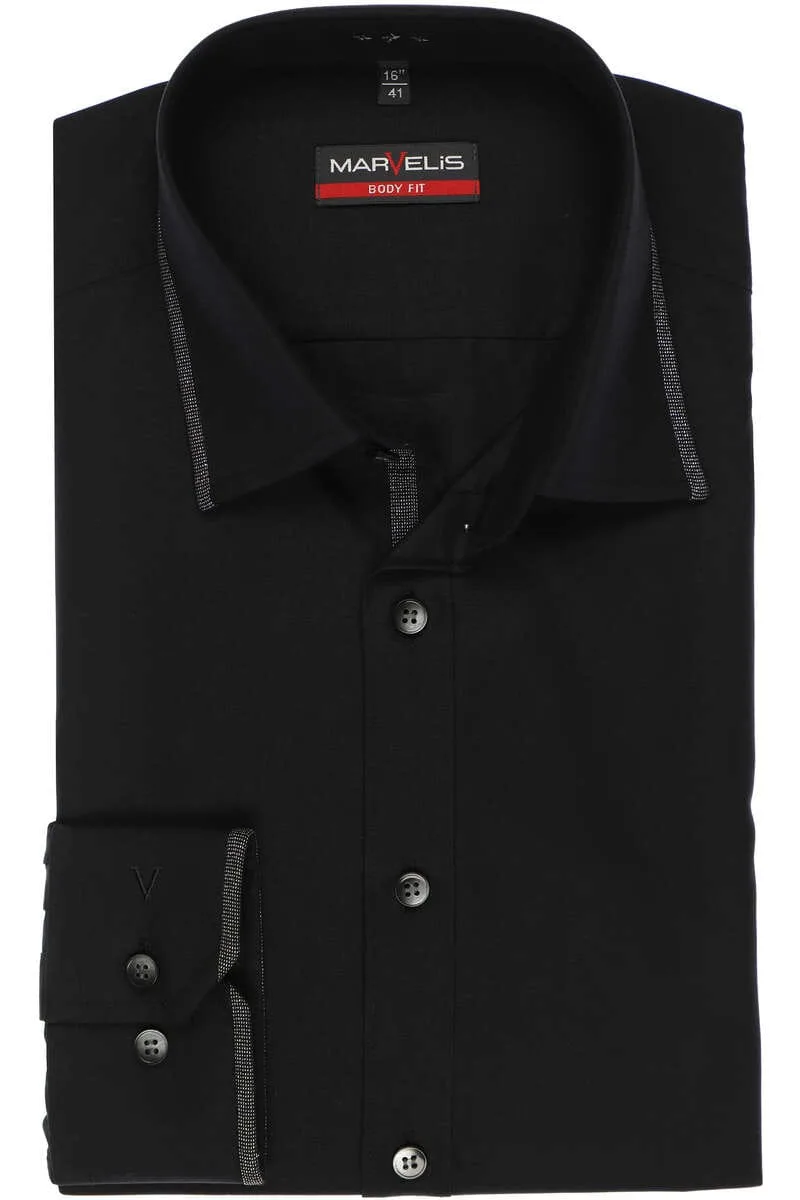 Marvelis Body Fit Overhemd zwart, Effen Prijzen