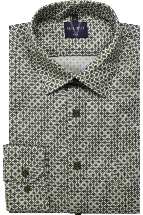 Marvelis Casual Overhemd olijf, Bedrukt Prijzen